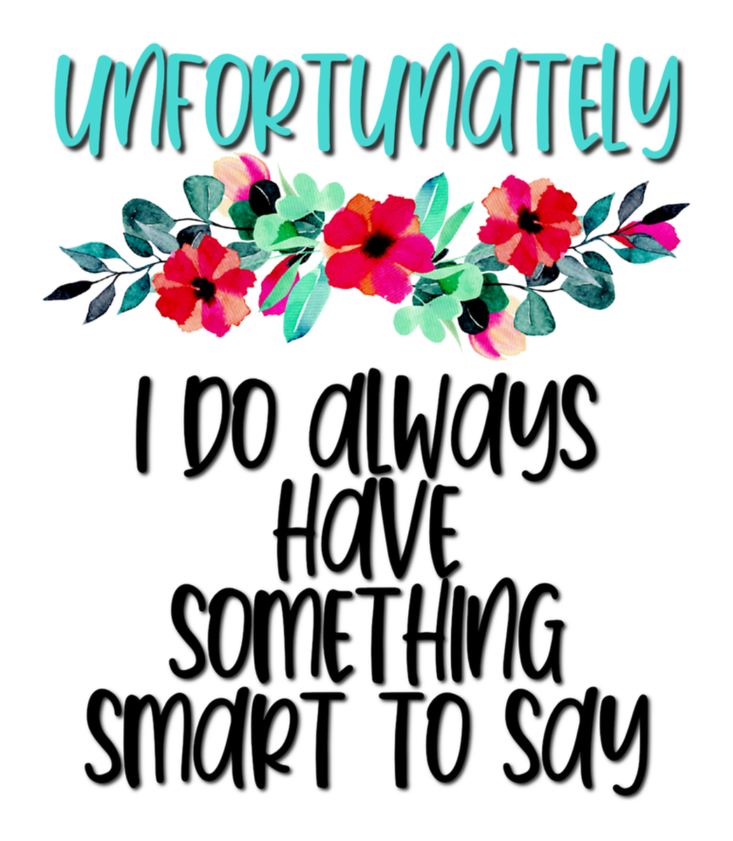 Highlights • Ships from Washington! Shorter shipping distances are kinder to the planet • Free shipping Materials: eco solvent ink, premium outdoor grade vinyl This is for one (1) 3.49 x 4 inch die cut vinyl waterproof sticker. Sticker decal: A graphic sticker featuring a floral border design and text that reads "Unfortunately I do always have something smart to say" in a whimsical handwritten font style, with the background showcasing red flowers and green leaves against a light gray background. Sticker decal is indoor and outdoor (UV) safe. These high quality decal stickers are thick and durable and can be used many ways and on many items such as car windows, walls, lockers, tumblers, wine glasses, notebooks, planners, mirrors, cellphone cases, and more. Makes a great gift! Funny waterproof sticker - weatherproof bumper sticker - vinyl decal