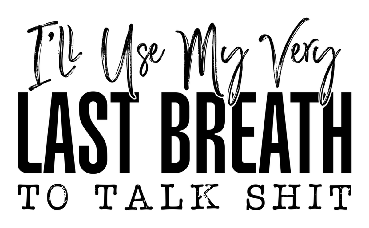 Highlights • Ships from Washington! Shorter shipping distances are kinder to the planet • Free shipping Materials: eco solvent ink, premium outdoor grade vinyl This is for one (1) 4 x 2.47 inch die cut vinyl waterproof sticker. Sticker decal features a white square sticker with a quote written in black cursive font that says 'I will use my very last breath to talk shit.' The artwork is simple and straightforward, focusing on the textual message of the sticker. Sticker decal is indoor and outdoor (UV) safe. These high quality decal stickers are thick and durable and can be used many ways and on many items such as car windows, walls, lockers, tumblers, wine glasses, notebooks, planners, mirrors, cellphone cases, and more. Makes a great gift! Funny waterproof sticker - weatherproof bumper sticker - vinyl decal