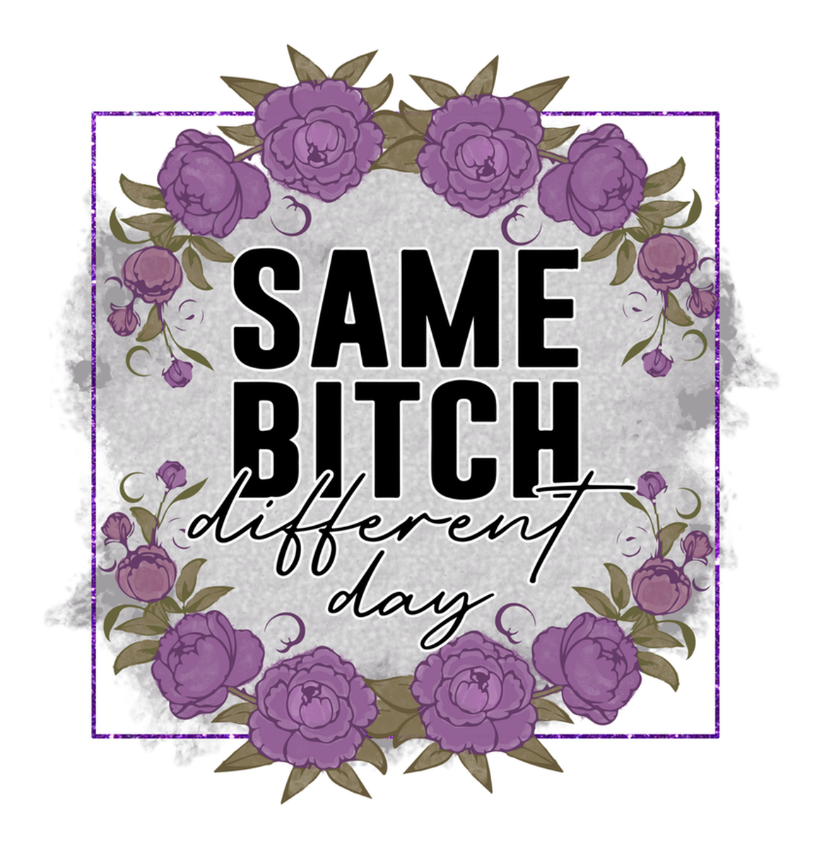 Highlights • Ships from Washington! Shorter shipping distances are kinder to the planet • Free shipping Materials: eco solvent ink, premium outdoor grade vinyl This is for one (1) 3.89 x 4 inch die cut vinyl waterproof sticker. Sticker decal of a purple floral frame around a phrase that reads "SAME B*TCH DAY" in a bold, distressed font on a grunge background. Sticker decal is indoor and outdoor (UV) safe. These high quality decal stickers are thick and durable and can be used many ways and on many items such as car windows, walls, lockers, tumblers, wine glasses, notebooks, planners, mirrors, cellphone cases, and more. Makes a great gift! Funny waterproof sticker - weatherproof bumper sticker - vinyl decal