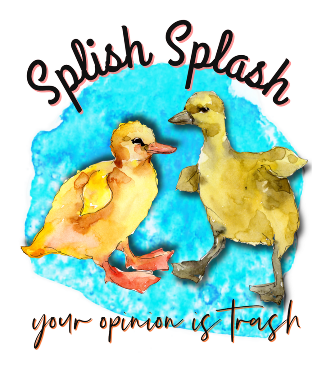 Highlights • Ships from Washington! Shorter shipping distances are kinder to the planet • Free shipping Materials: eco solvent ink, premium outdoor grade vinyl This is for one (1) 3.55 x 4 inch die cut vinyl waterproof sticker. Sticker decal of an artistic watercolor illustration featuring a yellow duck and baby duckling walking on water with the text "SPLISH SPLASH" and "Your opinion is trash" in an ornate font, suggesting sarcasm and humor. Sticker decal is indoor and outdoor (UV) safe. These high quality decal stickers are thick and durable and can be used many ways and on many items such as car windows, walls, lockers, tumblers, wine glasses, notebooks, planners, mirrors, cellphone cases, and more. Makes a great gift! Funny waterproof sticker - weatherproof bumper sticker - vinyl decal