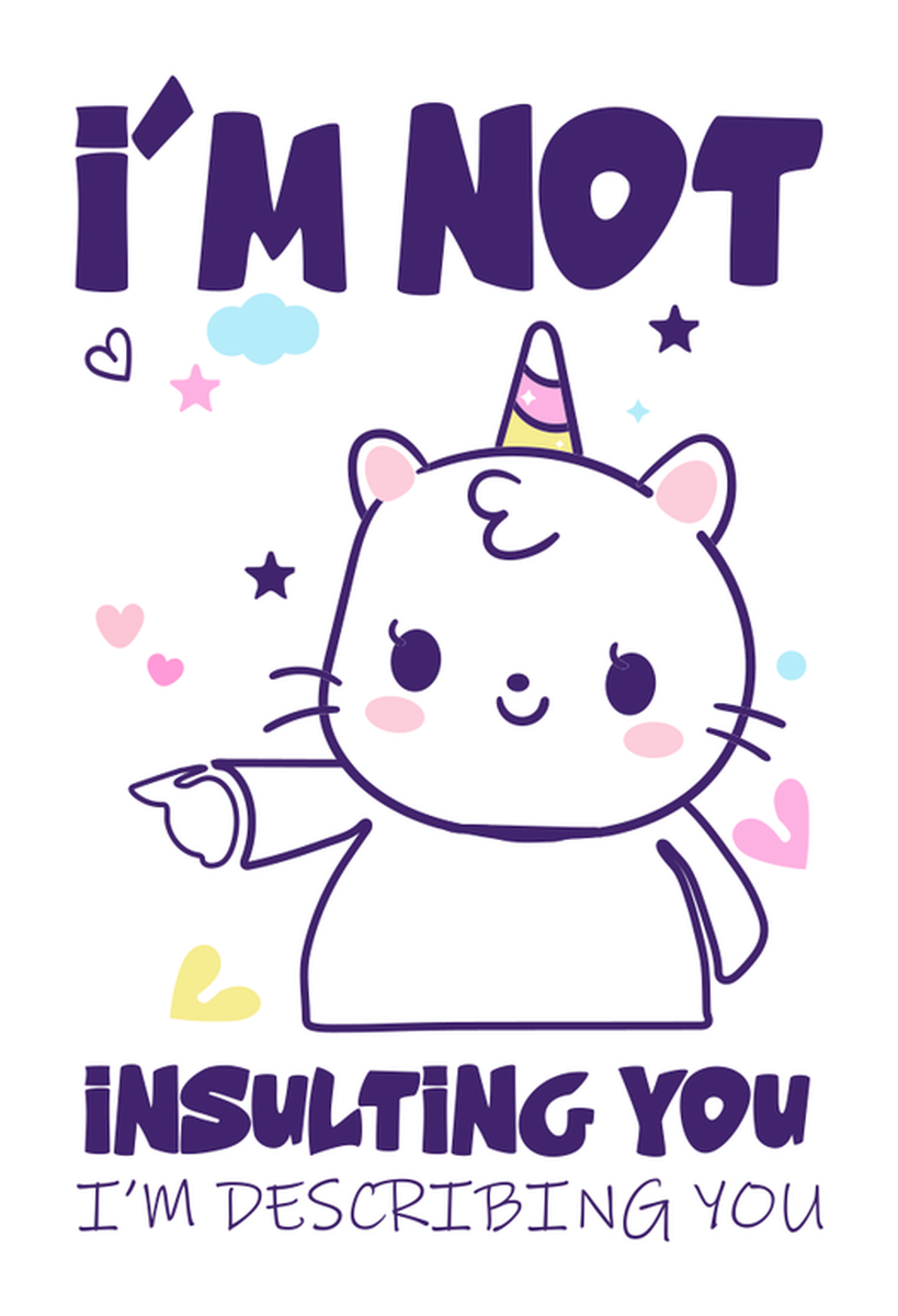 Highlights • Ships from Washington! Shorter shipping distances are kinder to the planet • Free shipping Materials: eco solvent ink, premium outdoor grade vinyl This is for one (1) 2.73 x 4 inch die cut vinyl waterproof sticker. Sticker decal: A colorful sticker featuring a purple unicorn pointing with its front right hoof. The unicorn has a heart on its forehead, behind which is text that reads "I'm not insulting you. Sticker decal is indoor and outdoor (UV) safe. These high quality decal stickers are thick and durable and can be used many ways and on many items such as car windows, walls, lockers, tumblers, wine glasses, notebooks, planners, mirrors, cellphone cases, and more. Makes a great gift! Funny waterproof sticker - weatherproof bumper sticker - vinyl decal