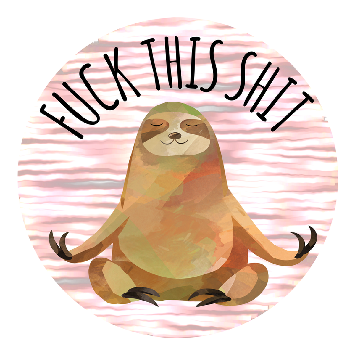 Highlights • Ships from Washington! Shorter shipping distances are kinder to the planet • Free shipping Materials: eco solvent ink, premium outdoor grade vinyl This is for one (1) 4 x 4 inch die cut vinyl waterproof sticker. Sticker decal: An illustration of a sloth in a meditative pose surrounded by text that reads "FUCK THIS SHIT" & "BUT I JUST WANNA LIE DOWN". The artwork is in a cartoon style, using pastel colors with an abstract design behind the sloth. Sticker decal is indoor and outdoor (UV) safe. These high quality decal stickers are thick and durable and can be used many ways and on many items such as car windows, walls, lockers, tumblers, wine glasses, notebooks, planners, mirrors, cellphone cases, and more. Makes a great gift! Funny waterproof sticker - weatherproof bumper sticker - vinyl decal