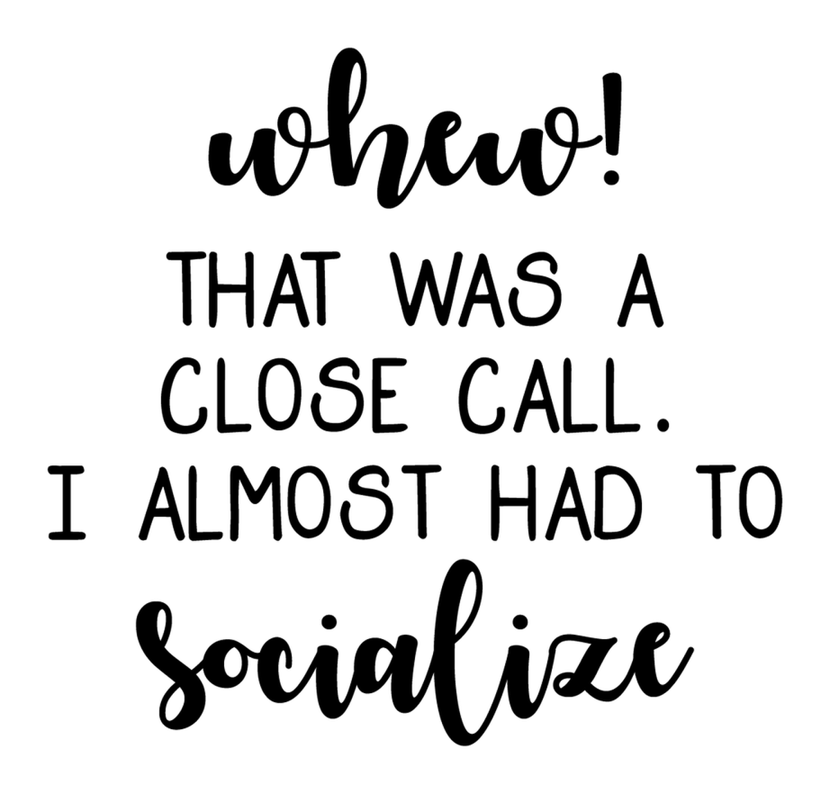 Highlights • Ships from Washington! Shorter shipping distances are kinder to the planet • Free shipping Materials: eco solvent ink, premium outdoor grade vinyl This is for one (1) 4 x 3.83 inch die cut vinyl waterproof sticker. Sticker decal featuring a black and white drawing of a phone with text saying "Whoa what happened that was a close call I almost had to socialize" written on it. Sticker decal is indoor and outdoor (UV) safe. These high quality decal stickers are thick and durable and can be used many ways and on many items such as car windows, walls, lockers, tumblers, wine glasses, notebooks, planners, mirrors, cellphone cases, and more. Makes a great gift! Funny waterproof sticker - weatherproof bumper sticker - vinyl decal