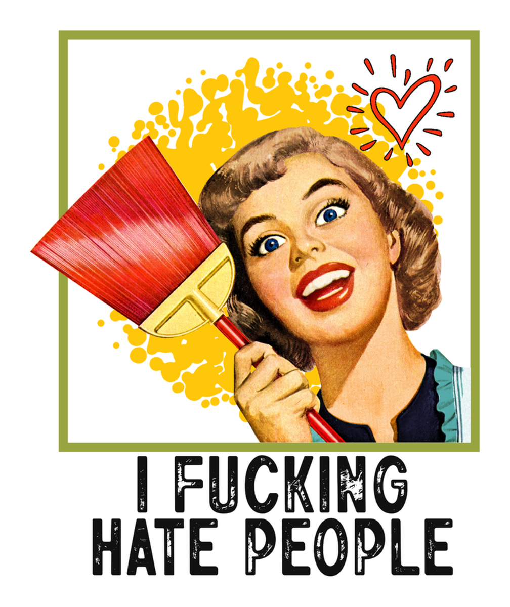 Highlights • Ships from Washington! Shorter shipping distances are kinder to the planet • Free shipping Materials: eco solvent ink, premium outdoor grade vinyl This is for one (1) 3.36 x 4 inch die cut vinyl waterproof sticker. Sticker decal of a vintage-style illustration of a woman holding a red paintbrush with an exaggeratedly mean expression, above which is text that reads "I FUCKING HATE PEOPLE. Sticker decal is indoor and outdoor (UV) safe. These high quality decal stickers are thick and durable and can be used many ways and on many items such as car windows, walls, lockers, tumblers, wine glasses, notebooks, planners, mirrors, cellphone cases, and more. Makes a great gift! Funny waterproof sticker - weatherproof bumper sticker - vinyl decal