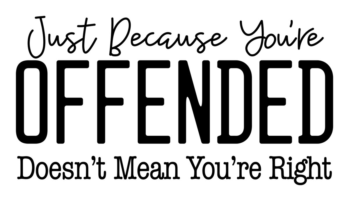 Highlights • Ships from Washington! Shorter shipping distances are kinder to the planet • Free shipping Materials: eco solvent ink, premium outdoor grade vinyl This is for one (1) 4 x 2.31 inch die cut vinyl waterproof sticker. Sticker decal with text "JUST BECAUSE YOU'RE OFFENDED DOESN'T MEAN YOU'RE RIGHT" on a black background. Sticker decal is indoor and outdoor (UV) safe. These high quality decal stickers are thick and durable and can be used many ways and on many items such as car windows, walls, lockers, tumblers, wine glasses, notebooks, planners, mirrors, cellphone cases, and more. Makes a great gift! Funny waterproof sticker - weatherproof bumper sticker - vinyl decal