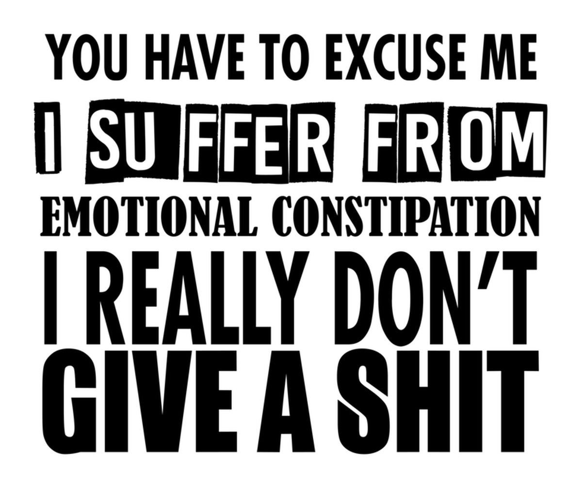 Highlights • Ships from Washington! Shorter shipping distances are kinder to the planet • Free shipping Materials: eco solvent ink, premium outdoor grade vinyl This is for one (1) 4 x 3.36 inch die cut vinyl waterproof sticker. Sticker decal of black-and-white comic art features a grayscale text that reads: "YOU HAVE TO EXCUSE ME I SUFFER FROM EMOTIONAL CONSTIPATION I REALLY DON'T GIVE A SHIT Sticker decal is indoor and outdoor (UV) safe. These high quality decal stickers are thick and durable and can be used many ways and on many items such as car windows, walls, lockers, tumblers, wine glasses, notebooks, planners, mirrors, cellphone cases, and more. Makes a great gift! Funny waterproof sticker - weatherproof bumper sticker - vinyl decal